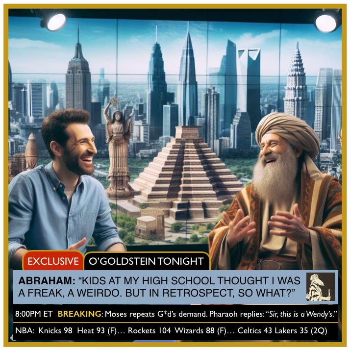 Abe: They were insulted because I challenged their worldview. We don’t have to accept the status quo. We don’t have to bow down to King Nebuchadnezzar or suck up to his family and those close to power because we’re all created in the image of G*d. We don’t have to worship trees or the sun or entertainers or supermodels or whatever society’s Golden Calf happens to be at the moment. We can do better. Live better. Treat each other better. We can embrace the widow, the orphan, and the stranger. … Today we call this “progress,” and we assume it’s a force that’s as natural as gravity. But it’s not and never has been. Progress — our collective journey through history toward a better world, a Promised Land — is frequently interrupted by unexpected detours, dangers, and demagogues.