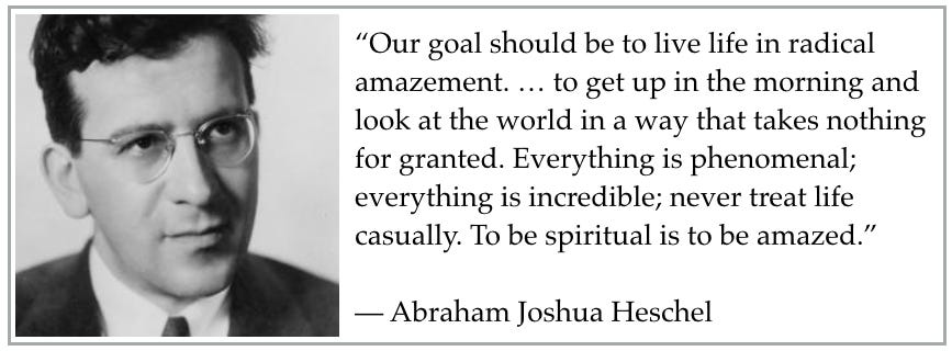 Religion, for [Rabbi Abraham Joshua] Heschel, is not a matter of accepting a set of beliefs. Religion is a way of knowing the world, a unique way of apprehending reality. And the opposite of religion is not doubt or disbelief or secularity. The opposite of religion is boredom — to look at the world and find nothing engaging, nothing surprising. The opposite of religion is to miss an essential element of reality — its mystery, its grandeur — it is to witness the sunset and just push down the car’s sun visor without a moment of amazement and wonder.