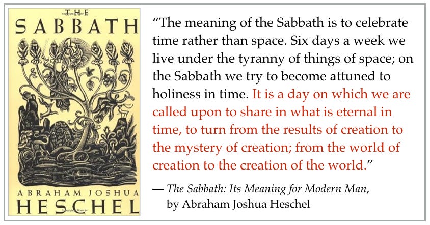 If you’re an observant Jew, then Shabbat (aka the Sabbath; the Seventh Day) is the time each week when you’re commanded to put away your mobile phone, turn off your TV and computer, and cease working and spending and driving and striving and creating.