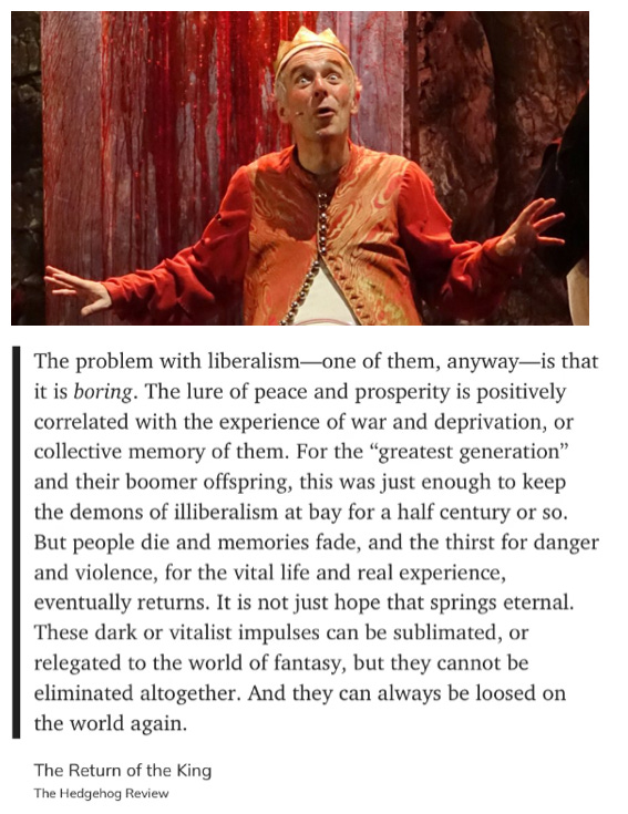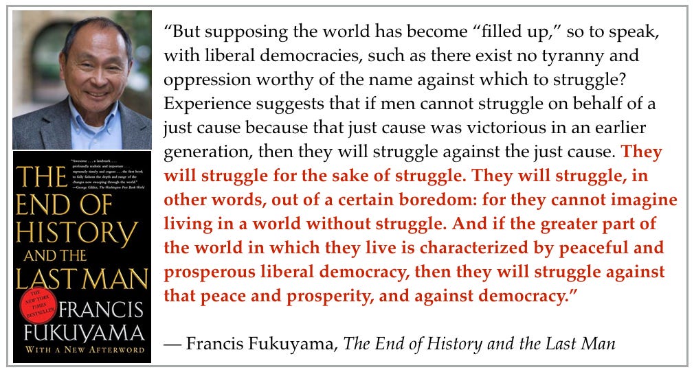 So… boredom is a threat to liberal democracy because it makes smart people do stupid and self-destructive things.