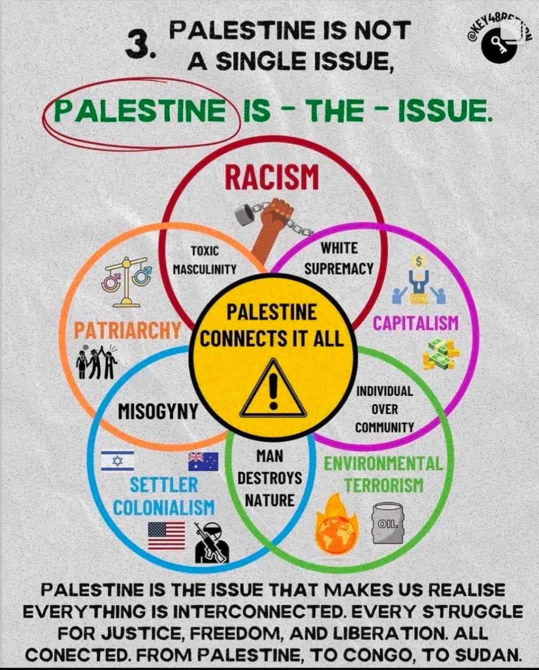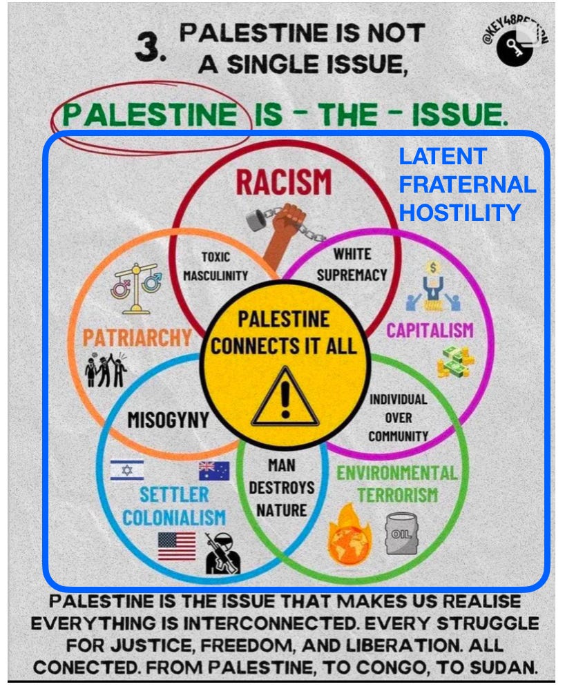 Problem is, this particular “explanation” — PALESTINE CONNECTS IT ALL! — suggests that Zionism is the central problem, the incarnation of all the world’s evils (racism, colonialism, capitalism, et. al.). But don’t despair! say the intersectionalists. The Jewish blood that was shed on October 7th will help free Palestine, which will ultimately save us all by washing away the sin of Israel. (Why does this story sound so familiar?)