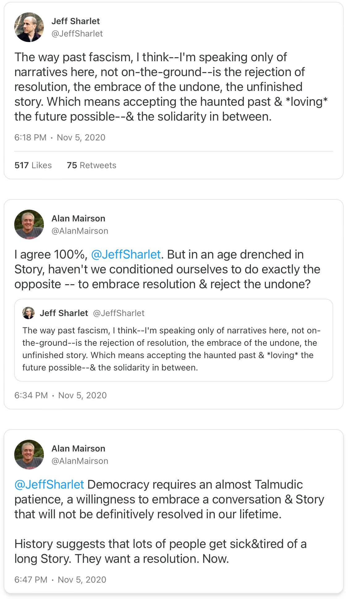 But I’ve never seen this theory of narrative dysfunction explicitly offered as the root cause of our current cultural and political instability.