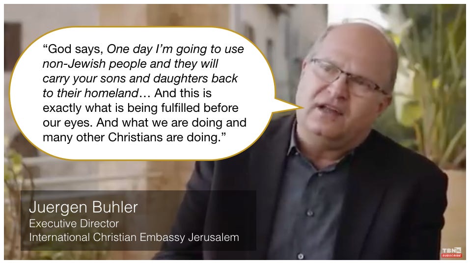Note to my Jewish friends: There are many millions of Christians out there who believe that by refusing to emigrate to Israel, we are defying the will of G*d and (I assume) preventing the Second Coming of Christ. We are not where we are supposed to be, and it’s time for us to go home. (I hope we can all agree that this belief is… problematic. And extremely dangerous.)